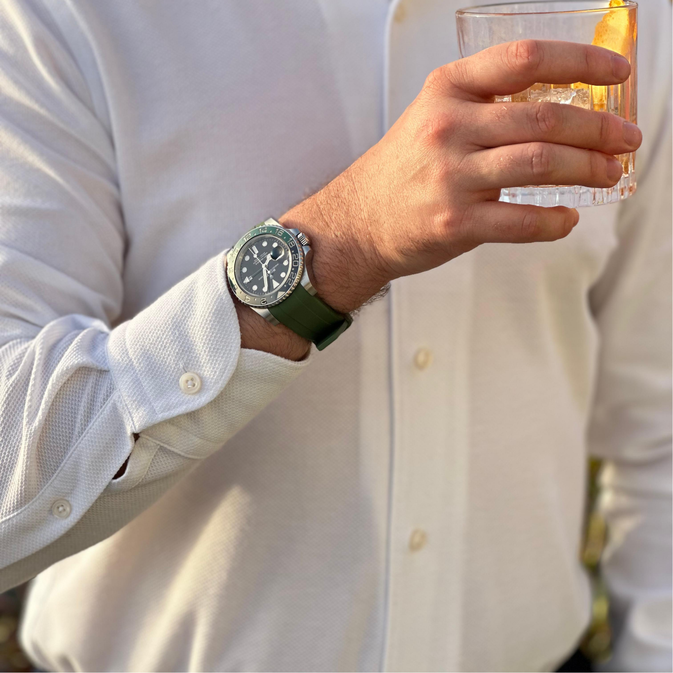 Luxury FKM Rubber Strap for Rolex Deployment Clasp 20mm - GREEN
